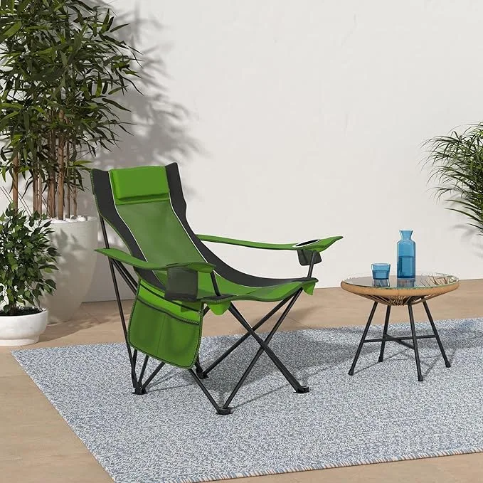 Product Name: Camper Folding Outdoor Chair with Removable Pillows Built-in Cup Holder and Side Organizer/Cooler for Beach Use