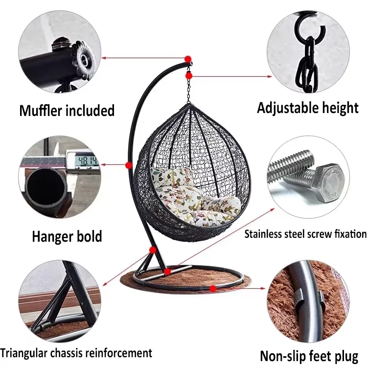 Product Name: Circular Hanging Pod Chair with Removable Cushion and Iron Stand for Both Indoor and Outdoor Applications