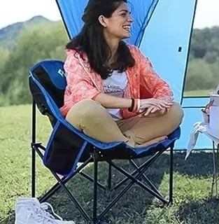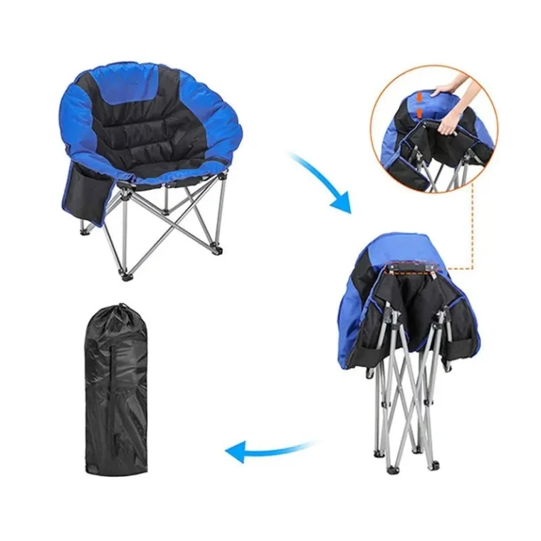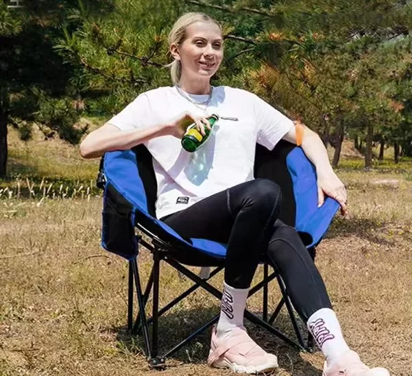 Product Name: Comfortable Portable and Foldable Moon Camping Chair with Thick Iron Pipe Stand and Side Cup Pockets for Beach Garden Courtyard