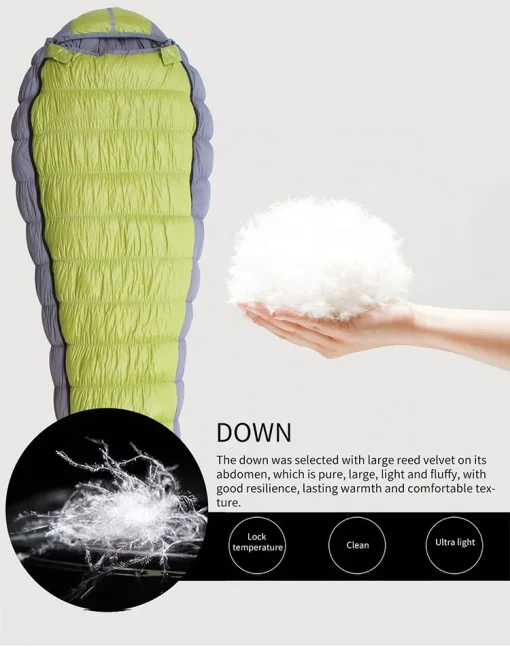Product Name: E-RIKE Factory Thick High FP Washable Luxury Camping Goose Down Sleeping Bag -40 for Outdoor Climbing