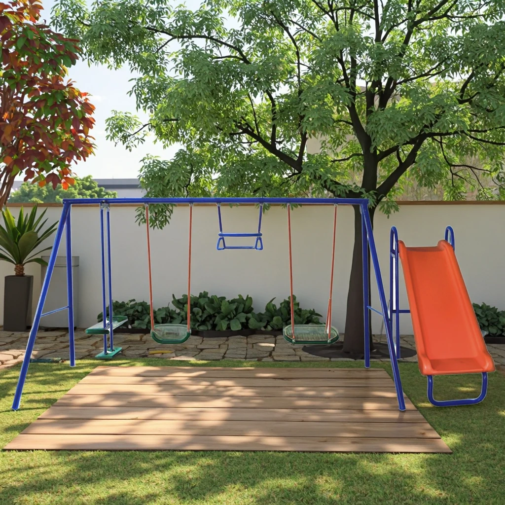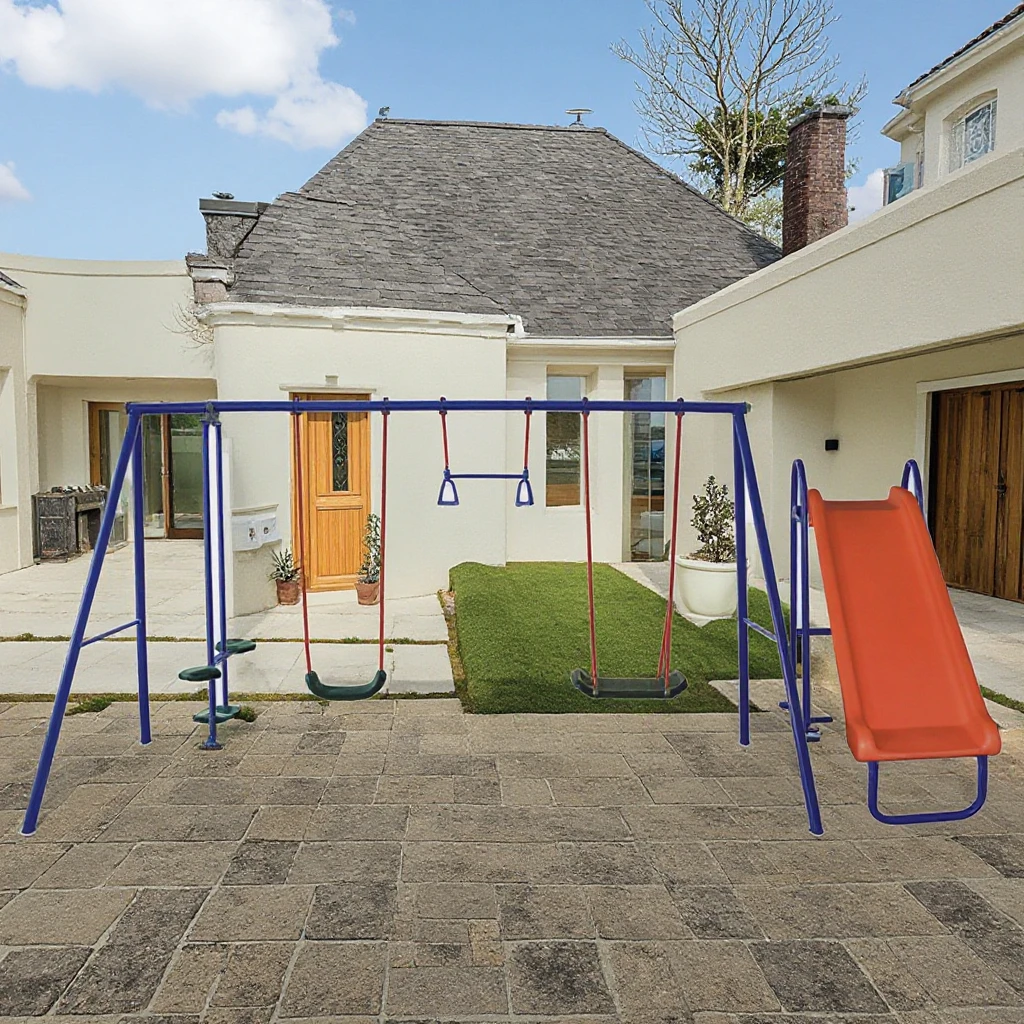 Product Name: Fantastic Playground Metal Swing Set Chair, Swing with Slide Set, Outdoor Swing Set