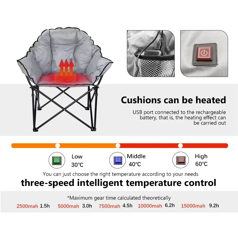 Product Name: Hangrui Modern 100% Polyester Foldable Camping Cushion Heated Chair Durable Wood Moon Chair for Winter Outdoor Activities