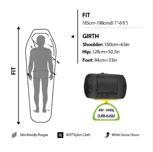 Product Name: HealthyGreenSale 4 Seasons Lightweight Portable Waterproof Camping White Goose Down Mummy Sleeping Bag with Compression Sack
