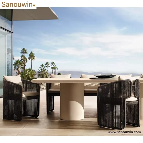 Product Name: High-End Modern Outdoor Dining Chair with Armrests Eco-Friendly All-Weather Woven Rattan Material for Outdoor Furniture