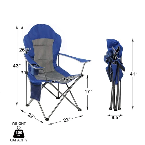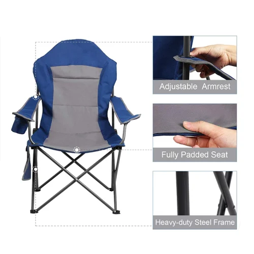 Product Name: HOMFUL Vietnam Suppliers Oversized Padded Quad Arm Chair Collapsible Steel High Back Folding Camp Chair