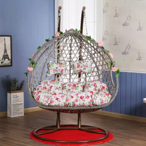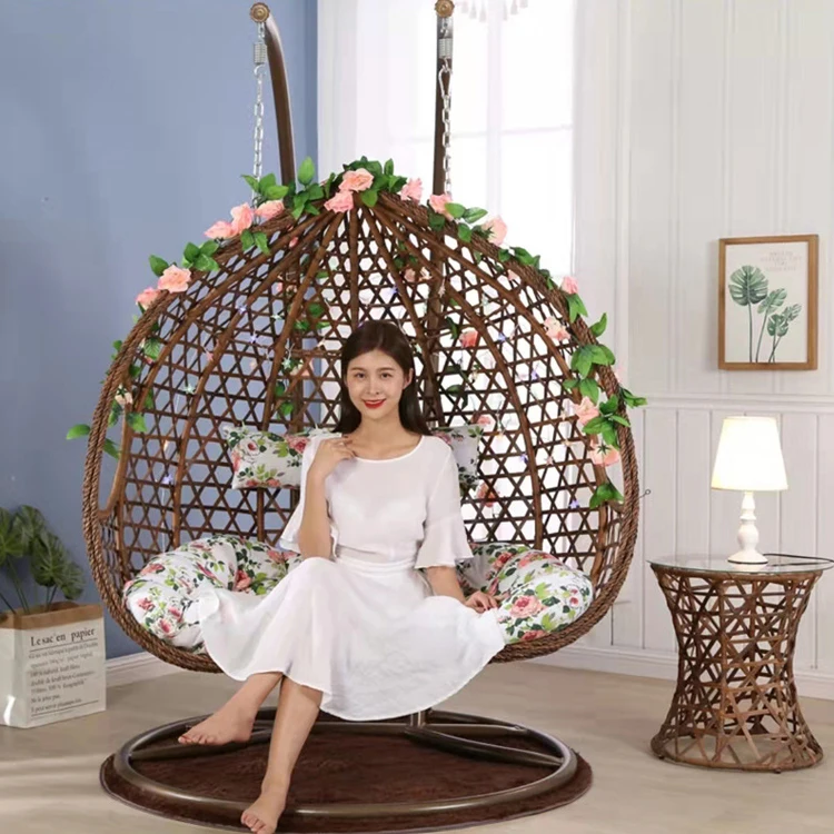 Product Name: Indoor Outdoor Balcony Garden Double People Portable Rattan Wicker Hanging Egg Swing Chair with Cushion