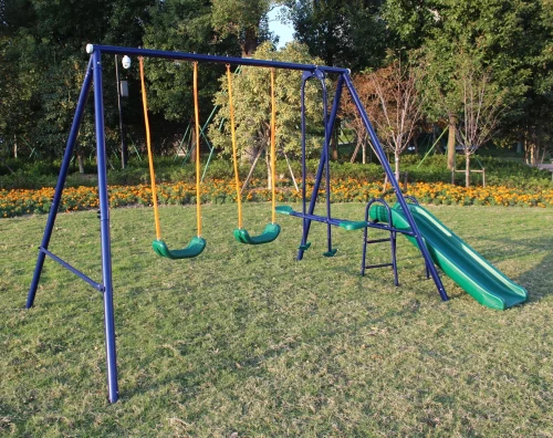 IUNNDS 2024 Metal Frame See-Saw Swing Set for Kids, Children Playground Metal Kids Swing Chair With Slide