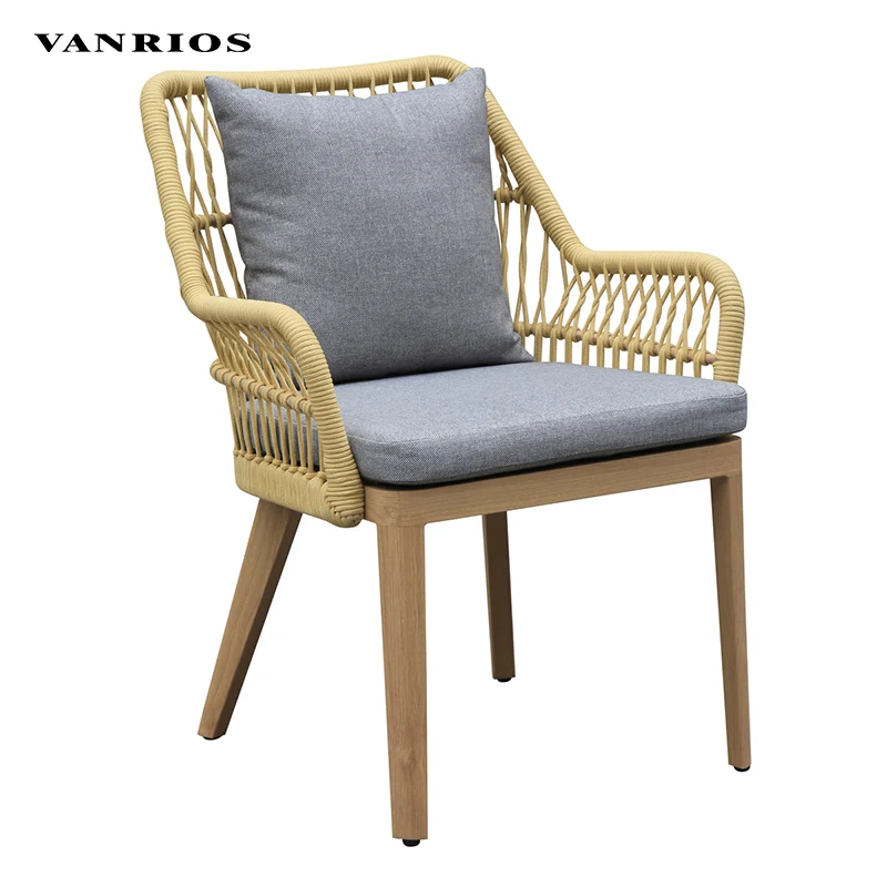 MB4119 Metal Aluminum Modern Camping Gray Rattan Dining Outdoor Garden Furniture Olifenrope Weaving Rope Weaving Patio Chair