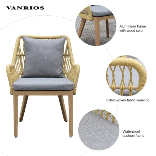 Product Name: MB4119 Metal Aluminum Modern Camping Gray Rattan Dining Outdoor Garden Furniture Olifenrope Weaving Rope Weaving Patio Chair