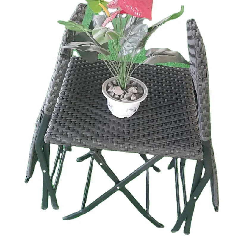 Product Name: Modern Style Outdoor Garden Furniture PE Rattan Folding Chair Set with Iron Bamboo Coffee Table 2 Relaxation Chairs