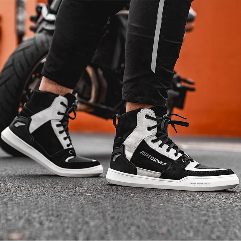 MOTOWOLF Anti-Slip Waterproof Genuine Leather Lining Off-road Racing Motocross Bike Boots Motorcycle Shoes