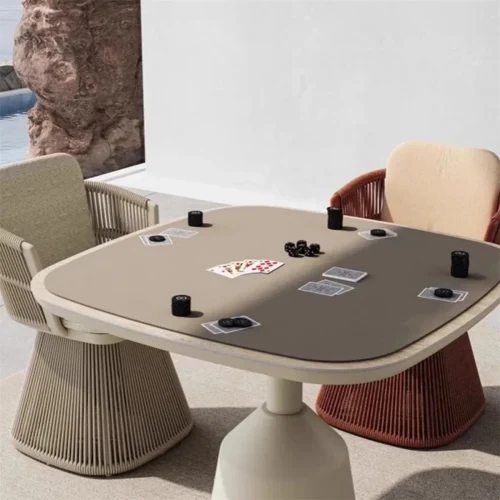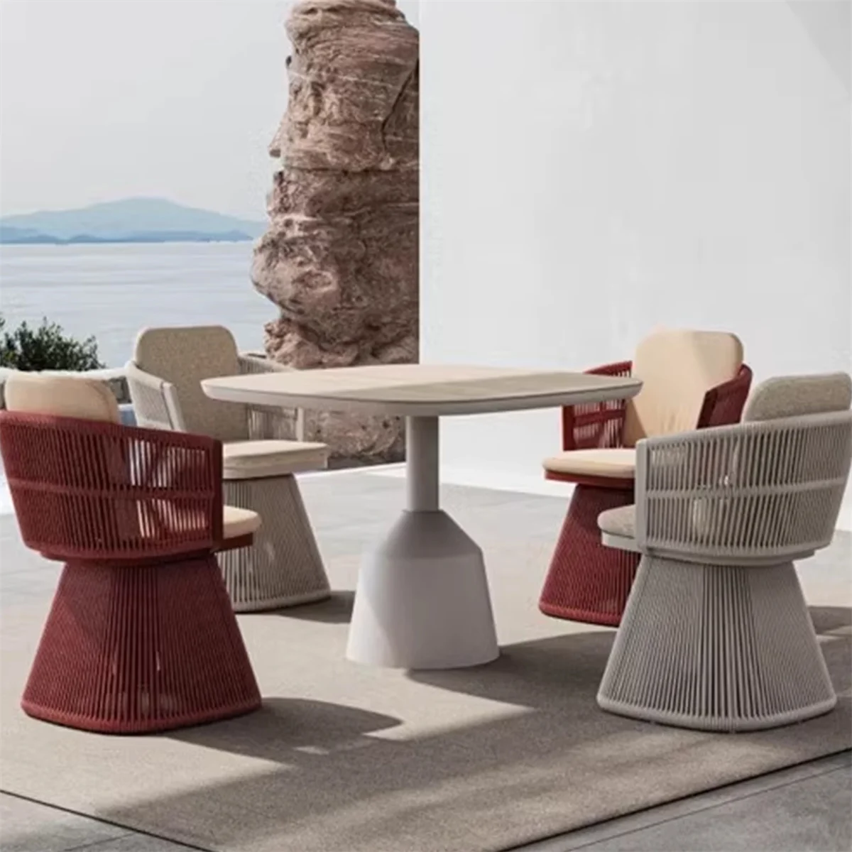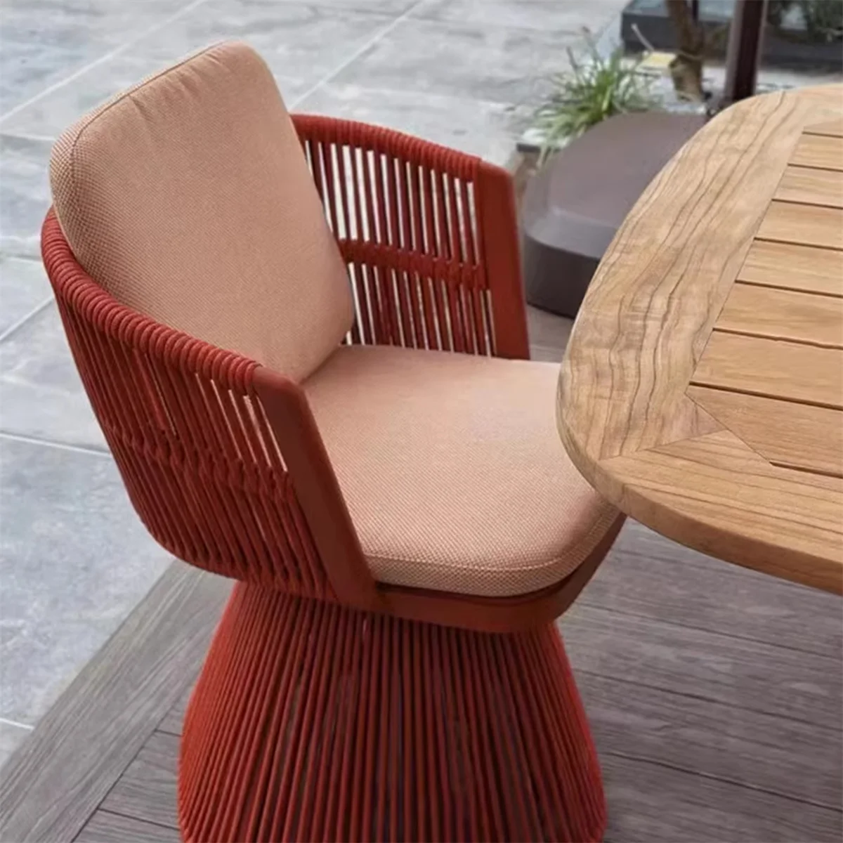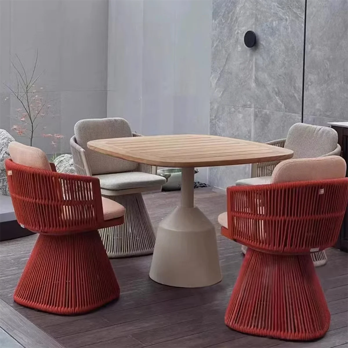 Nice Price Modern Outdoor Teak Wood Table and Rope Chair Set Metal Aluminum Alloy Garden All-Weather Dining Table Set