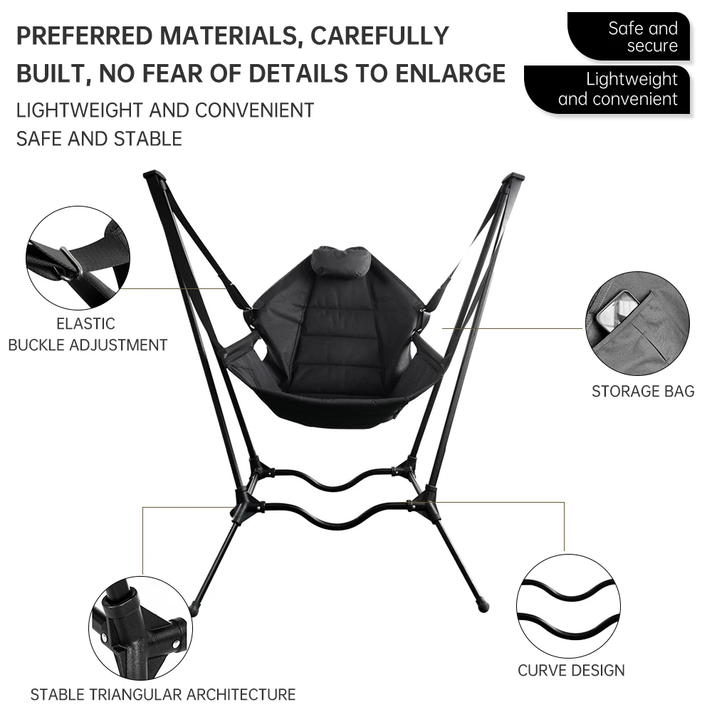 Product Name: Outdoor Adjustable Padded Foldable Rocking Heavy Duty Folding Swing Camping Beach Chair With Carry Shoulder for Adults