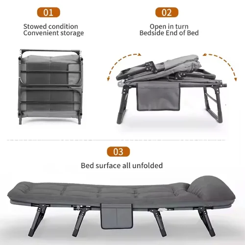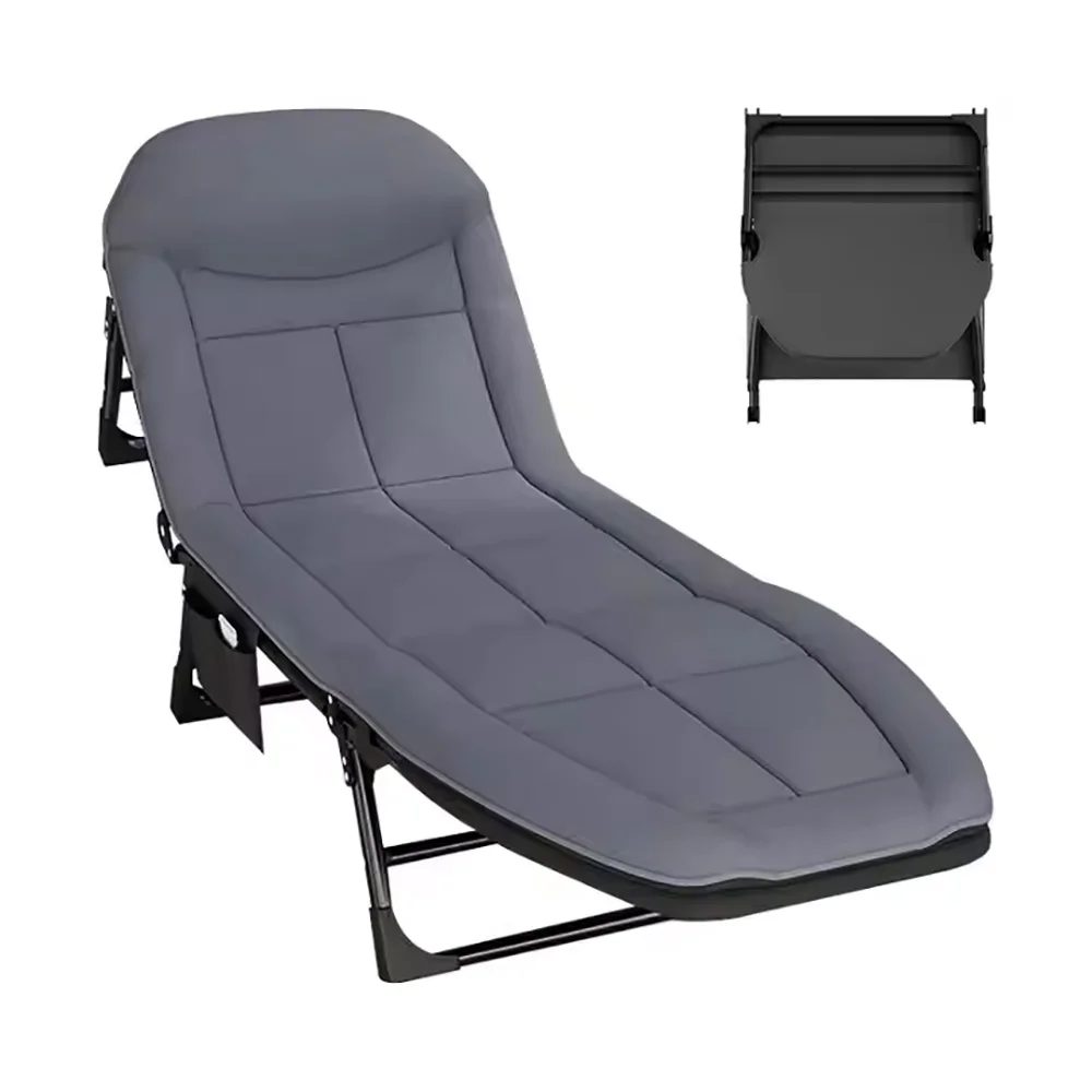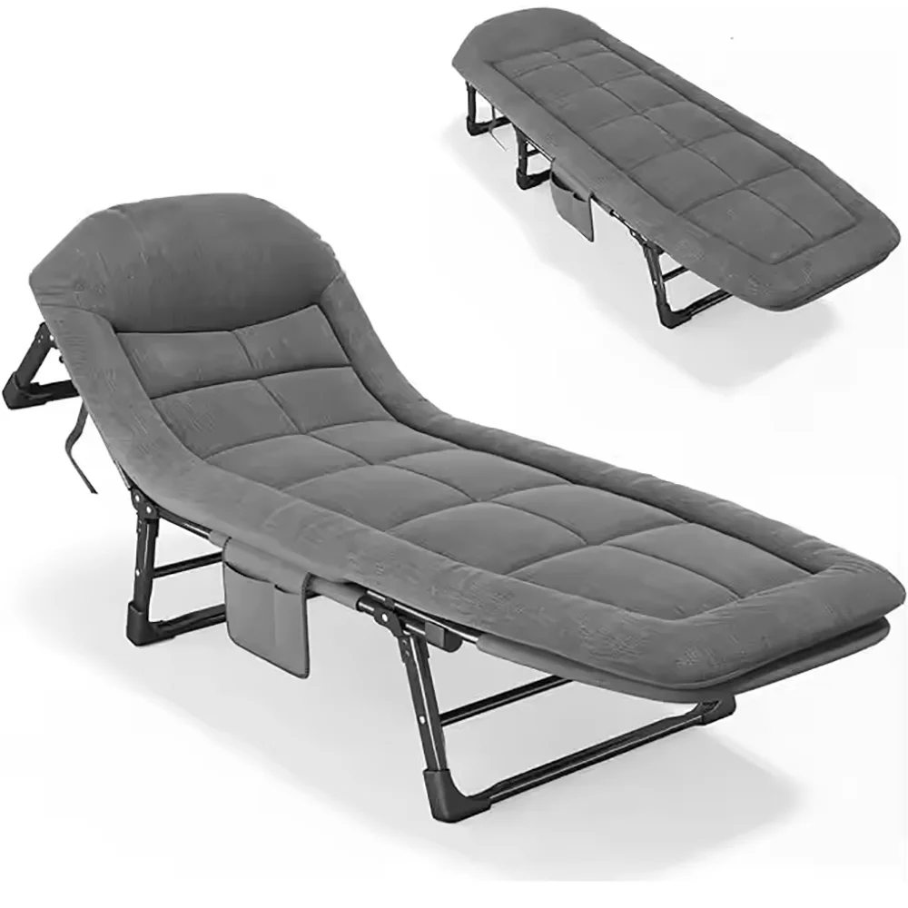 Outdoor Beach Metal Lounger Chair Sleeping Bed Folding Camping Cot Bed With Mattress