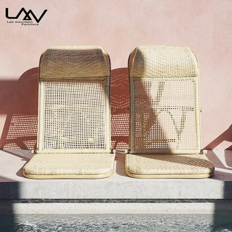 Outdoor Beach Rattan Folding Recliner Creative Outdoor Garden Camping Leisure Chair