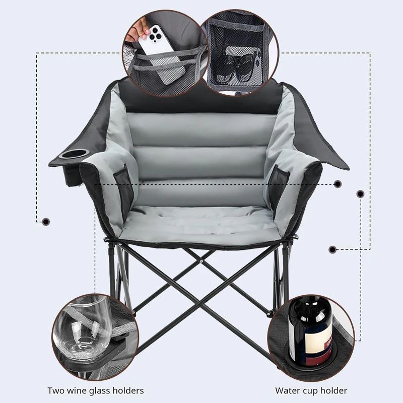 Outdoor Folding Camping Chair Shell Chair With Cup Holder Suitable for Beach Hiking Fishing Picnic