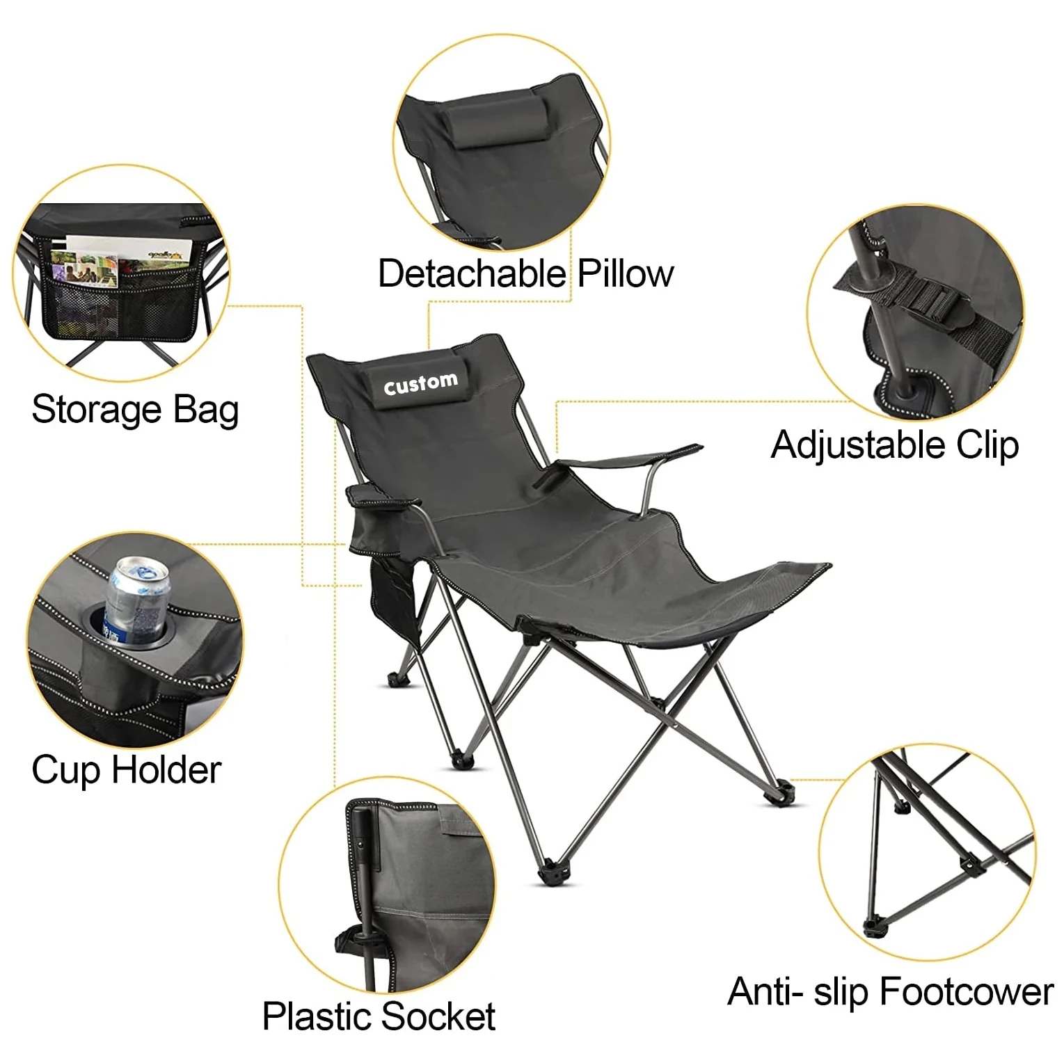 Product Name: Outdoor Furniture Multi-function Portable Folding Recliner Camping Chair With Carry Bag Beach Chair