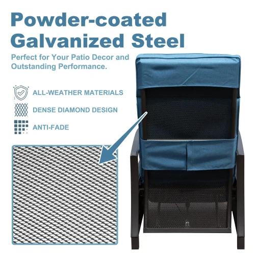 Product Name: Outdoor Patio Recliner Chair With Flip Table Push Back Adjustable Angle Removable Cushions Metal Lounge Chair