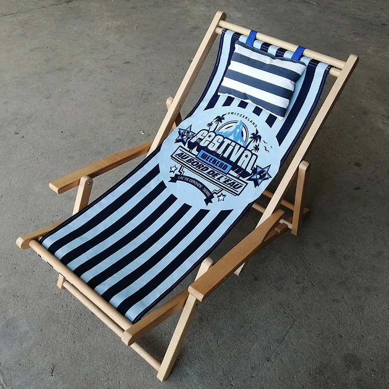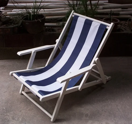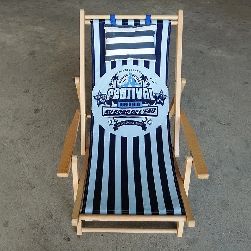 Outdoor Solid Beech Wooden Beach Chair Wood Folding Deck Chair Wooden Lounge Chairs Can Adjust Height