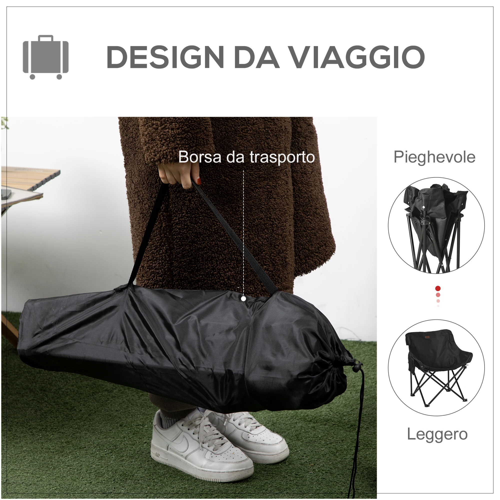 Product Name: Outsunny Oxford Fabric Folding Camping Chair with Side Pocket and Travel Bag, 61x54x66cm