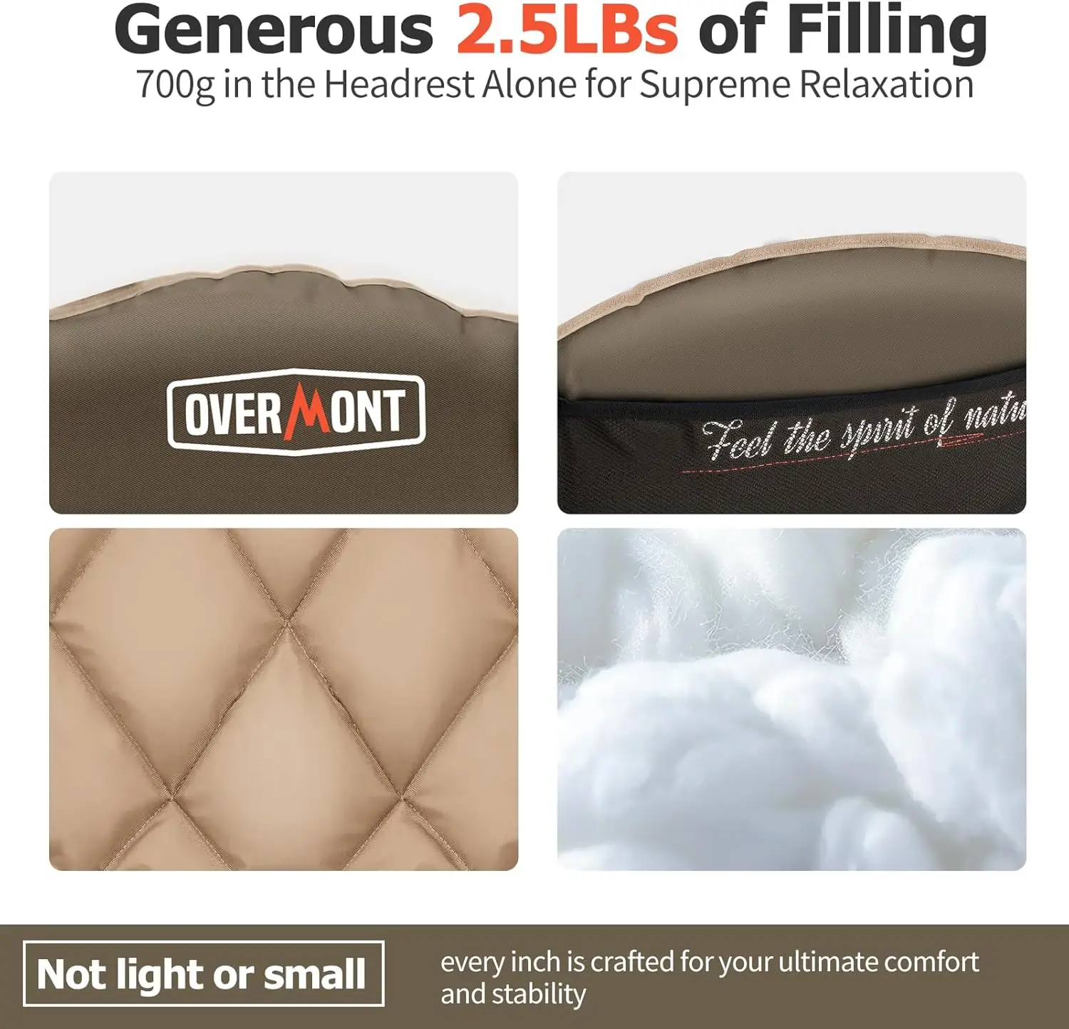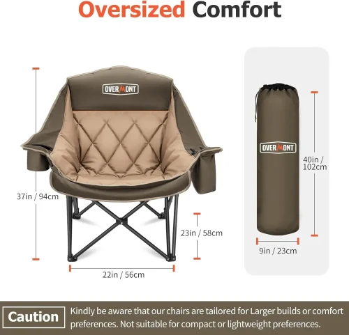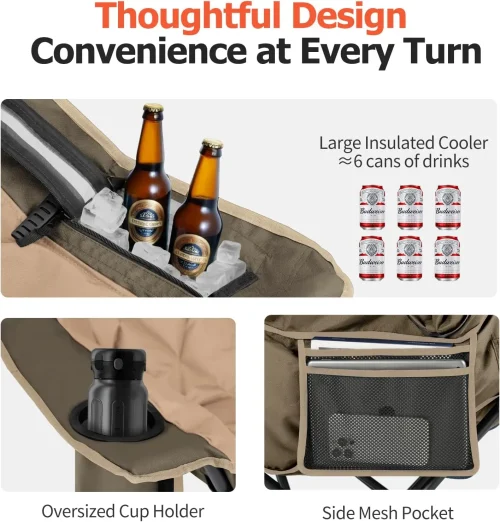 Product Name: Oversized XL Khaki Metal Camping Chair 450lbs Heavy-Duty Padded Folding Side Pocket Cup Holder Cooling Bag for Outdoor Beach Use