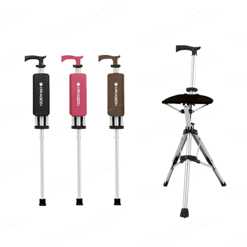 Portable Aluminum Alloy Elderly Crutch Chair Folding Walking Sticks Cane with Seat