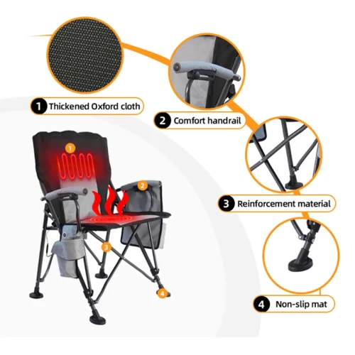 Product Name: Portable Camping Fishing Folding Quad Outdoor Large Heavy Duty Support Thicken Oxford Beach With Cup Holder Heated Padded Chair