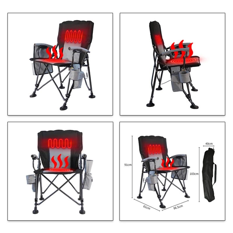 Portable Camping Fishing Folding Quad Outdoor Large Heavy Duty Support Thicken Oxford Beach With Cup Holder Heated Padded Chair