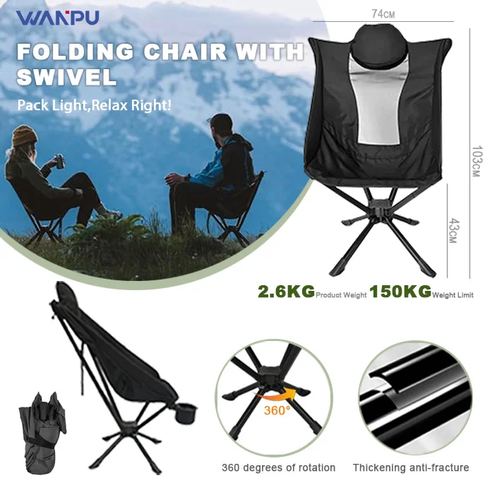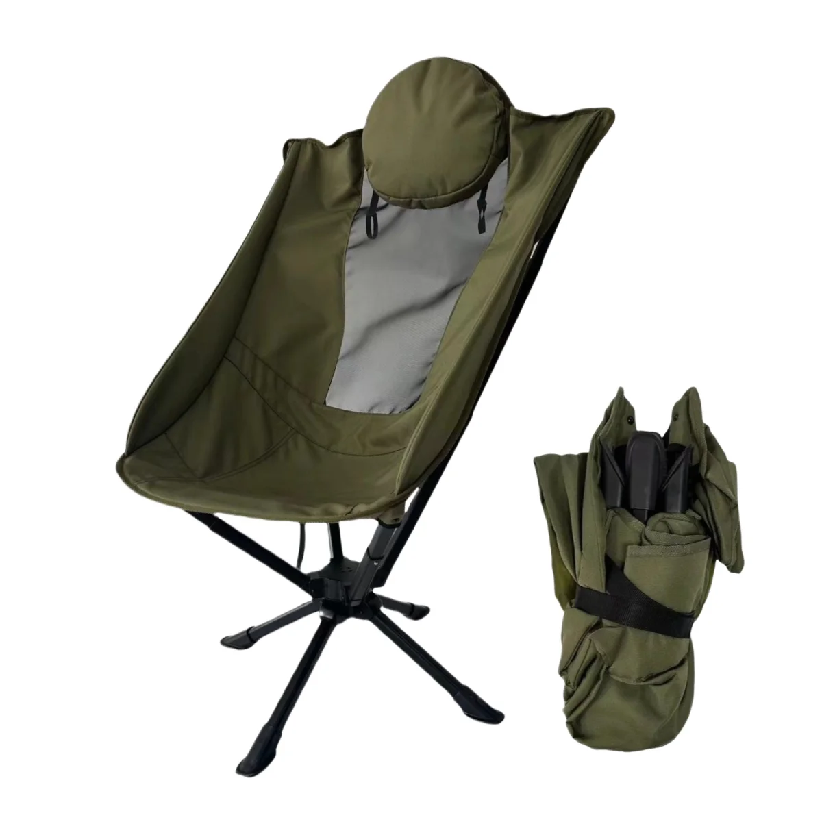 Portable Folding Outdoor Chair Quick Open Rotatable Aluminum Alloy 150kg Capacity for Camping Fishing Beach Use