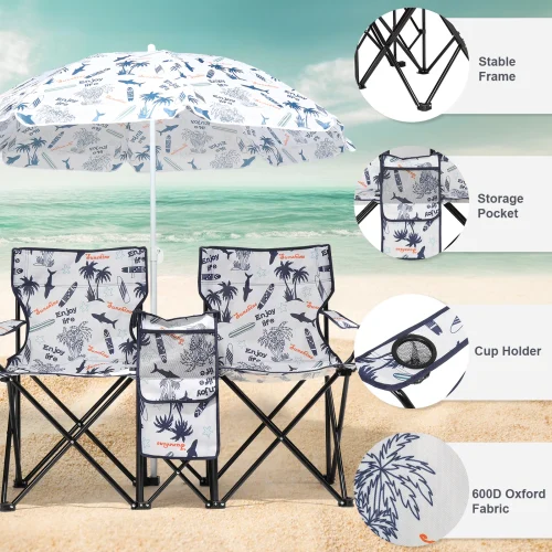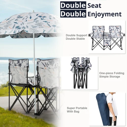 Product Name: Portable Outdoor Beach Chair 2-Seat Folding Chair with Removable Sun Umbrella Coconut Tree
