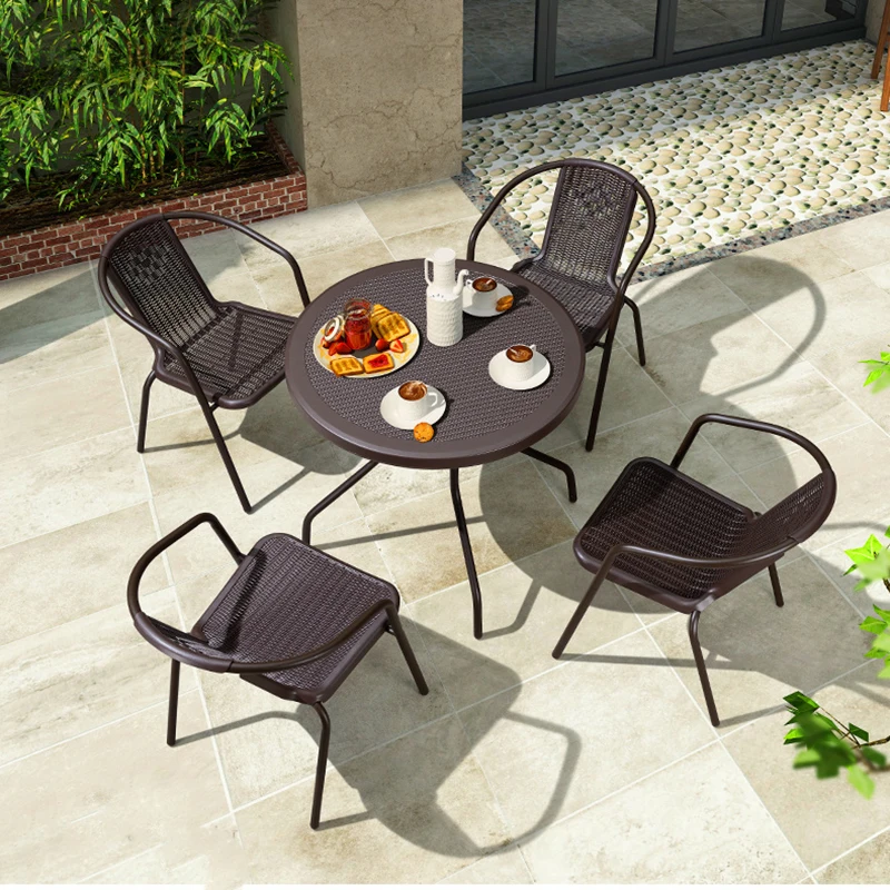 Product Name: Portable Outdoor Garden Furniture Poker Banquet Catering Bbq Picnic Table Set Brown Iron Plastic Chair