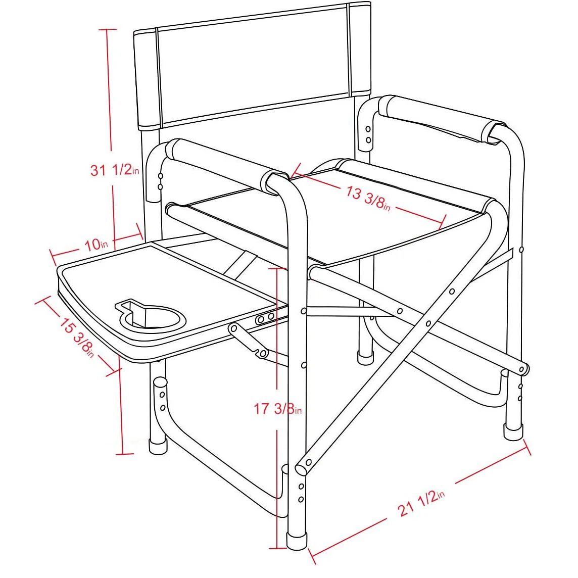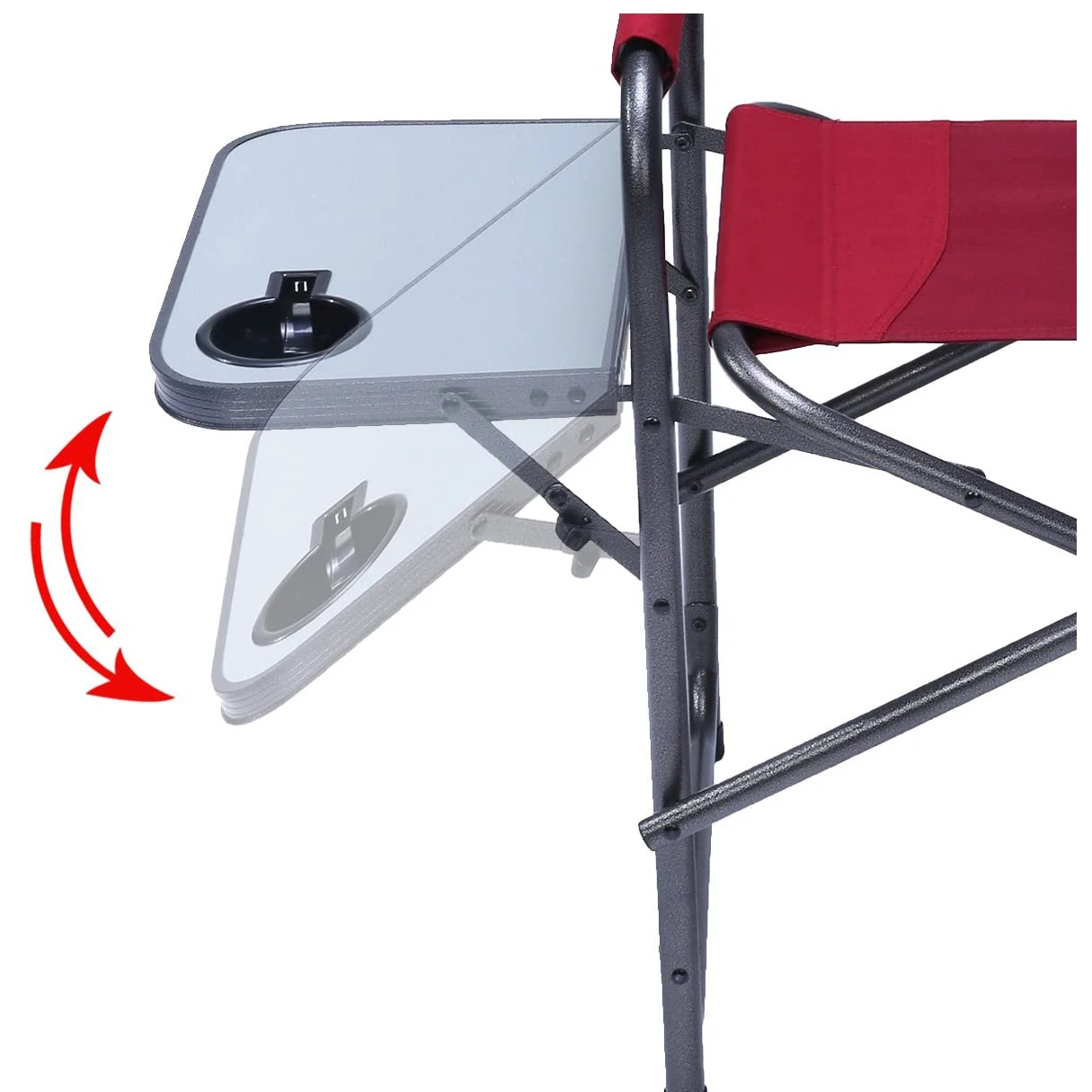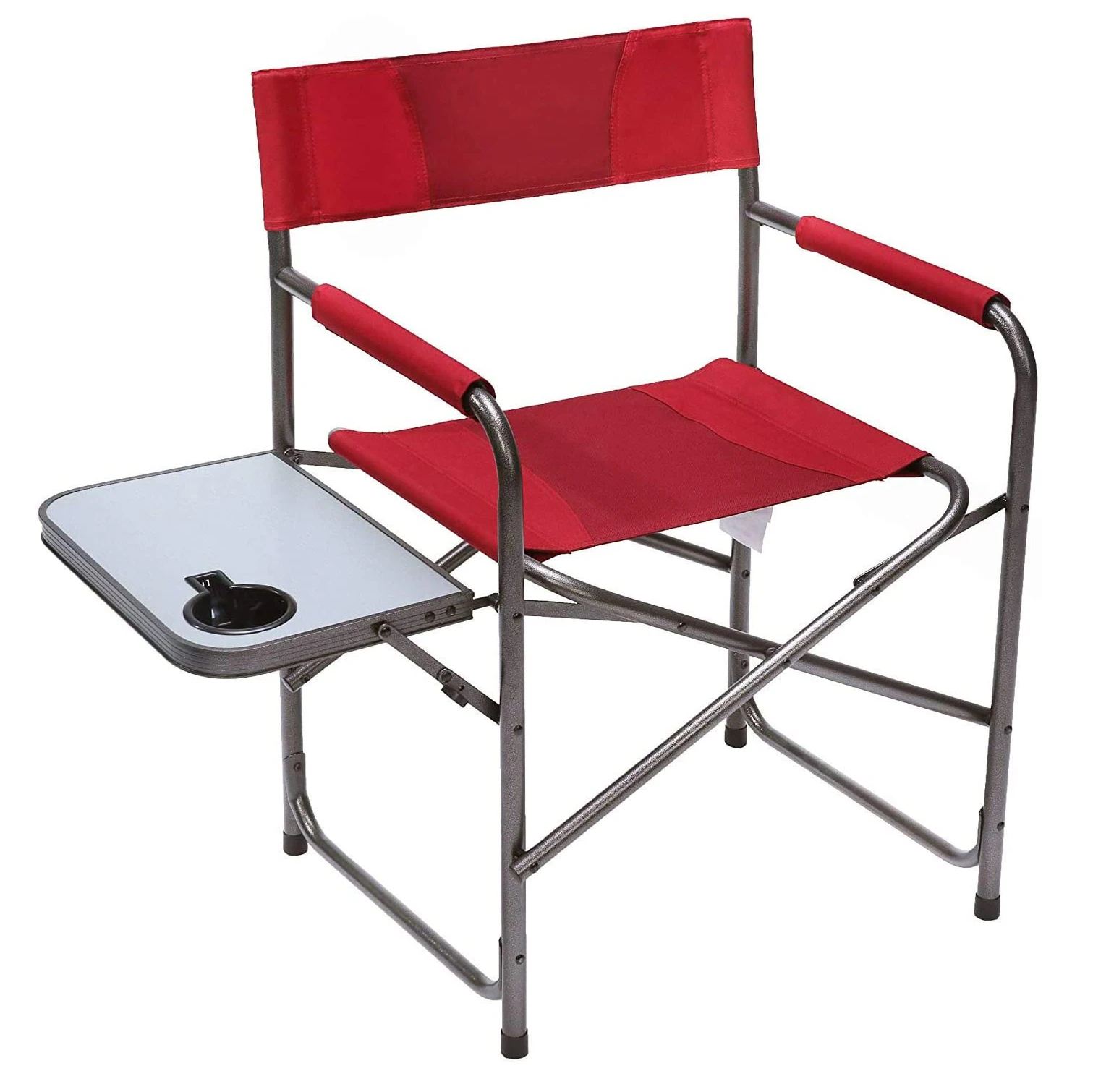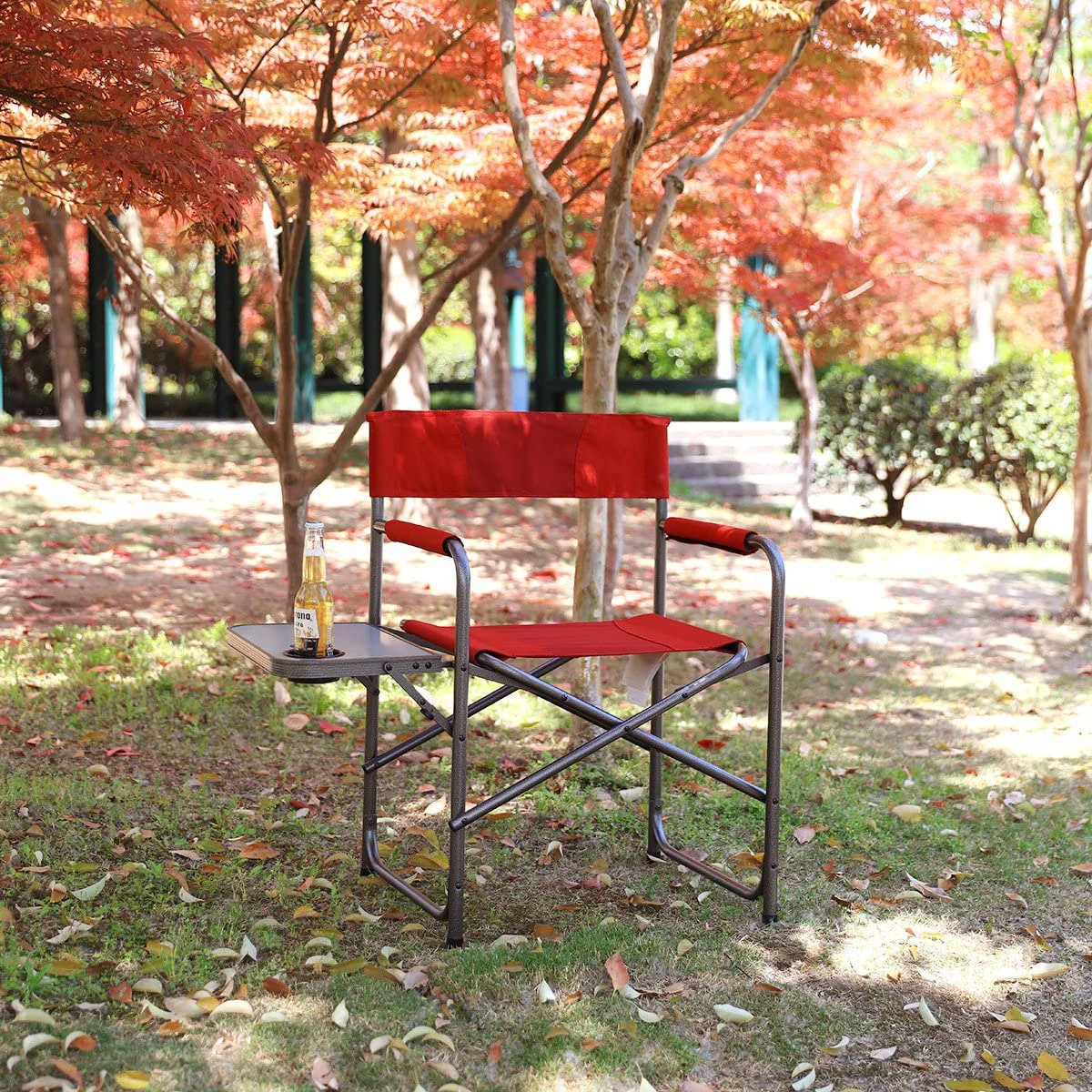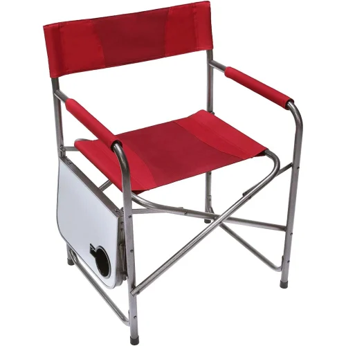 Product Name: Red Steel Frame Folding Director’s Chair Portable Camping Chair with Side Table, Supports 225 LBS