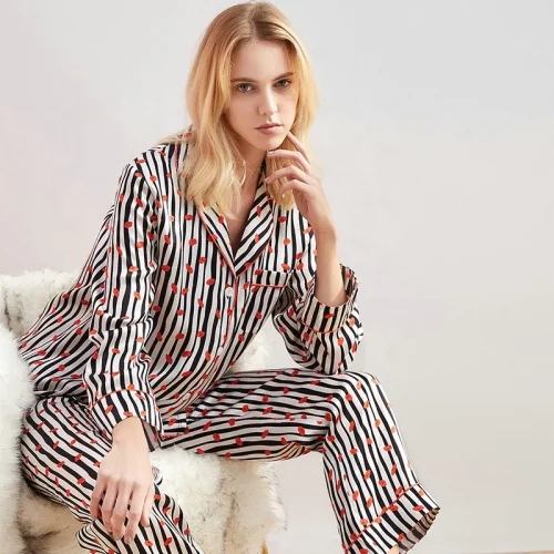 Product Name: Satin Sleep Wear 100% Pure Silk Pyjamas Set Winter Women Silk Pajamas