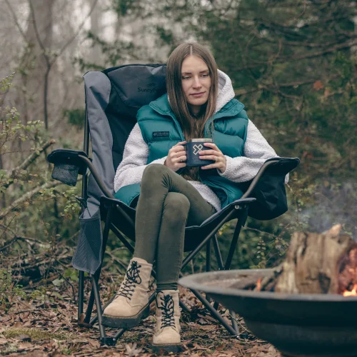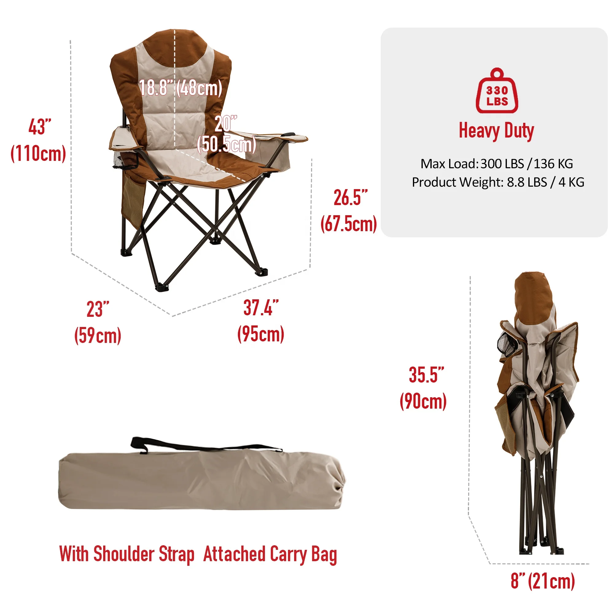 SUNNYFEEL Oversized Folding Camping Chair, Padded Portable Lawn Chair with Cooler for Adults Heavy Duty 300 LBS