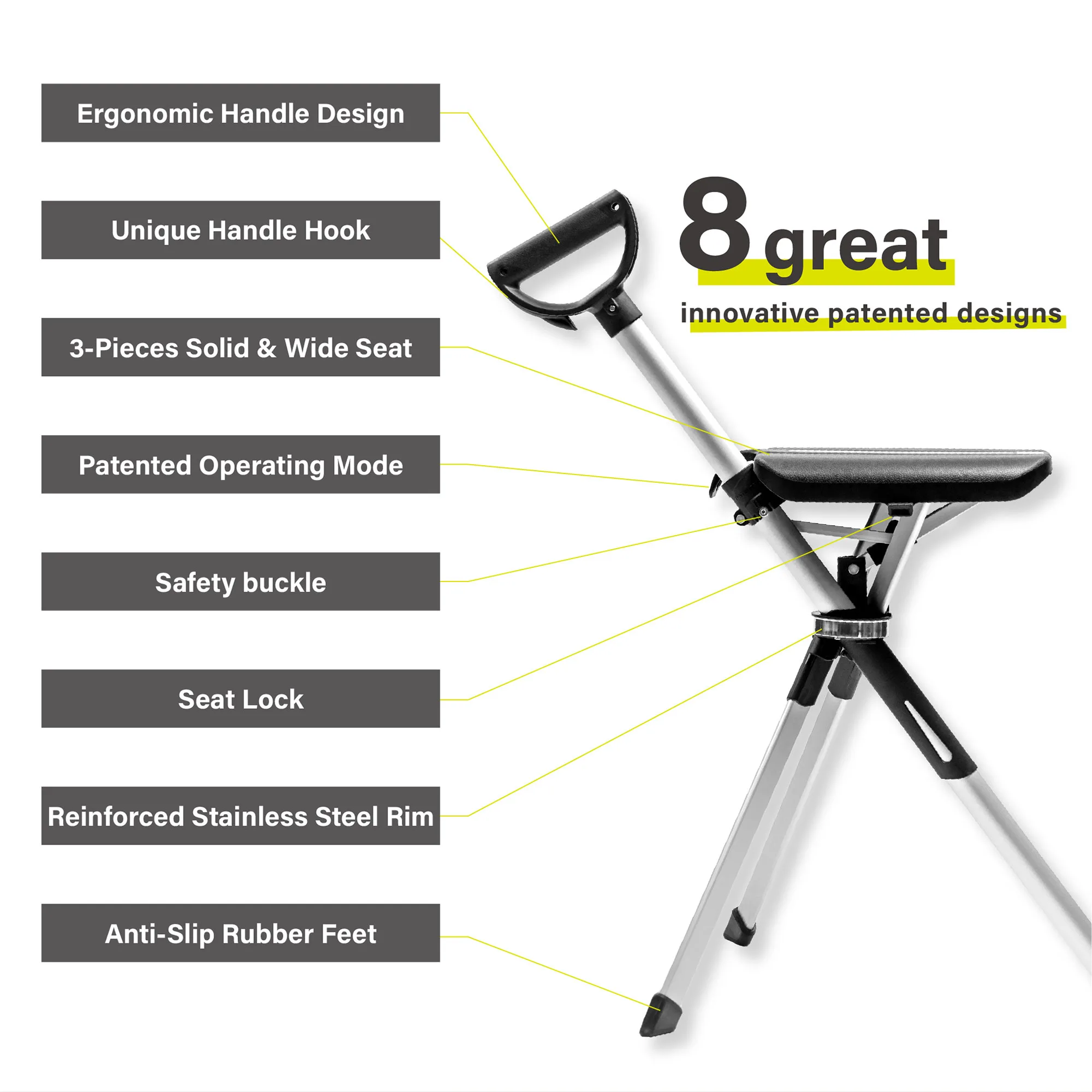 Product Name: Ta-Da Chair Series 2 Outdoor Portable Folding Walking Stick Crutch Chair Ocean Blue 82cm for Camping Fishing