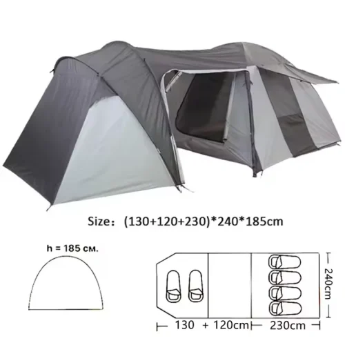 Product Name: Two Bedrooms and One Living Room Gray White Outdoor Camping Hiking Tent Relaxing Sleeping Tents Suitable for 5-8 Persons