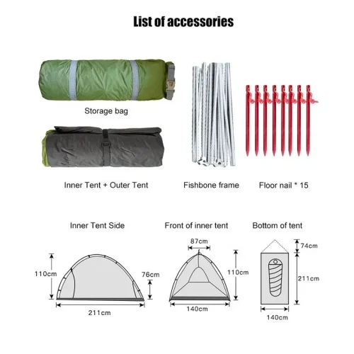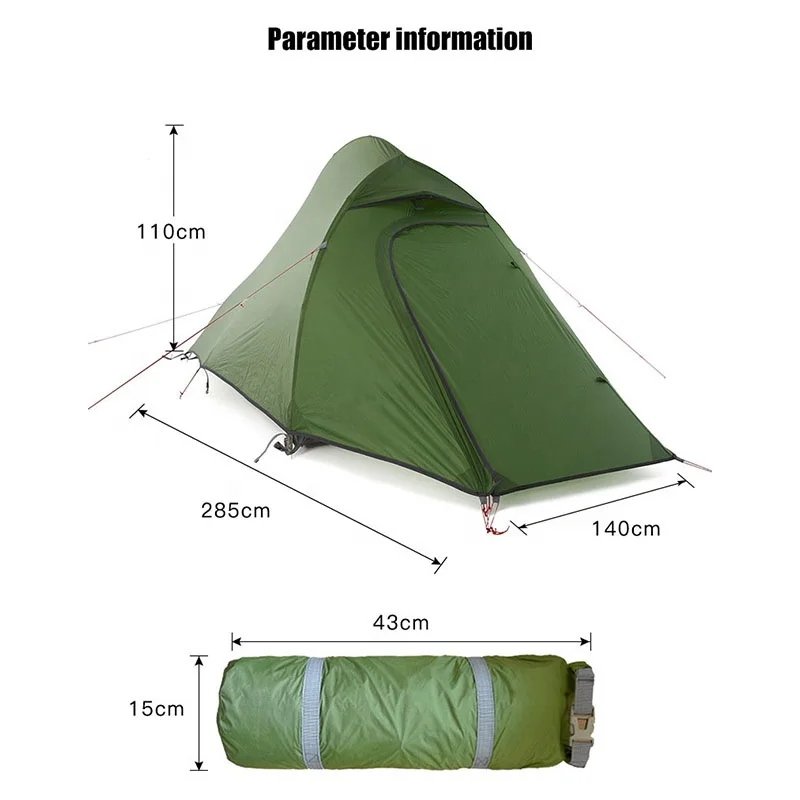 Ultralight 2 Person Aluminum Pole Tent Portable Backpacking Waterproof Nylon Double Layers Camping Tent