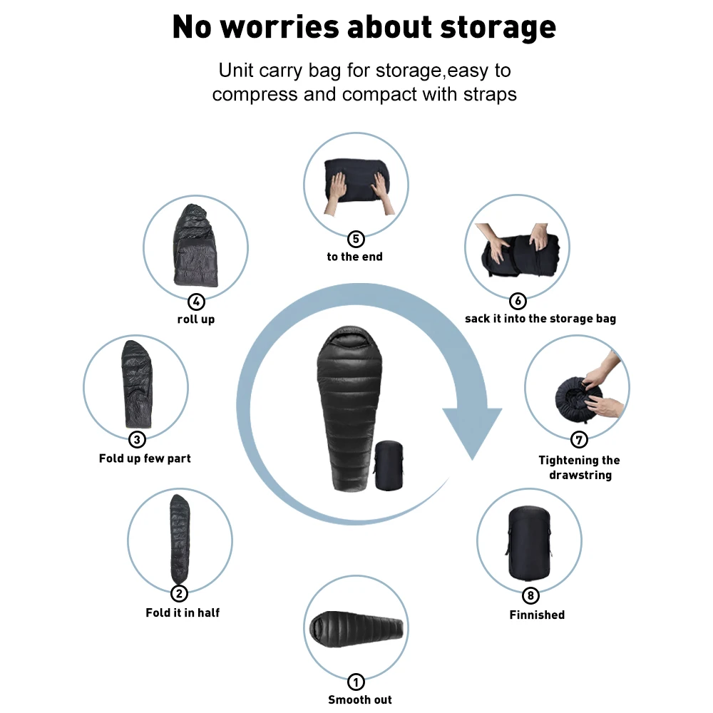 Product Name: Ultra-Light Mummy Duck Down Winter Sleeping Bag for Adults Single 3-Season Outdoor Camping with Nylon Fabric