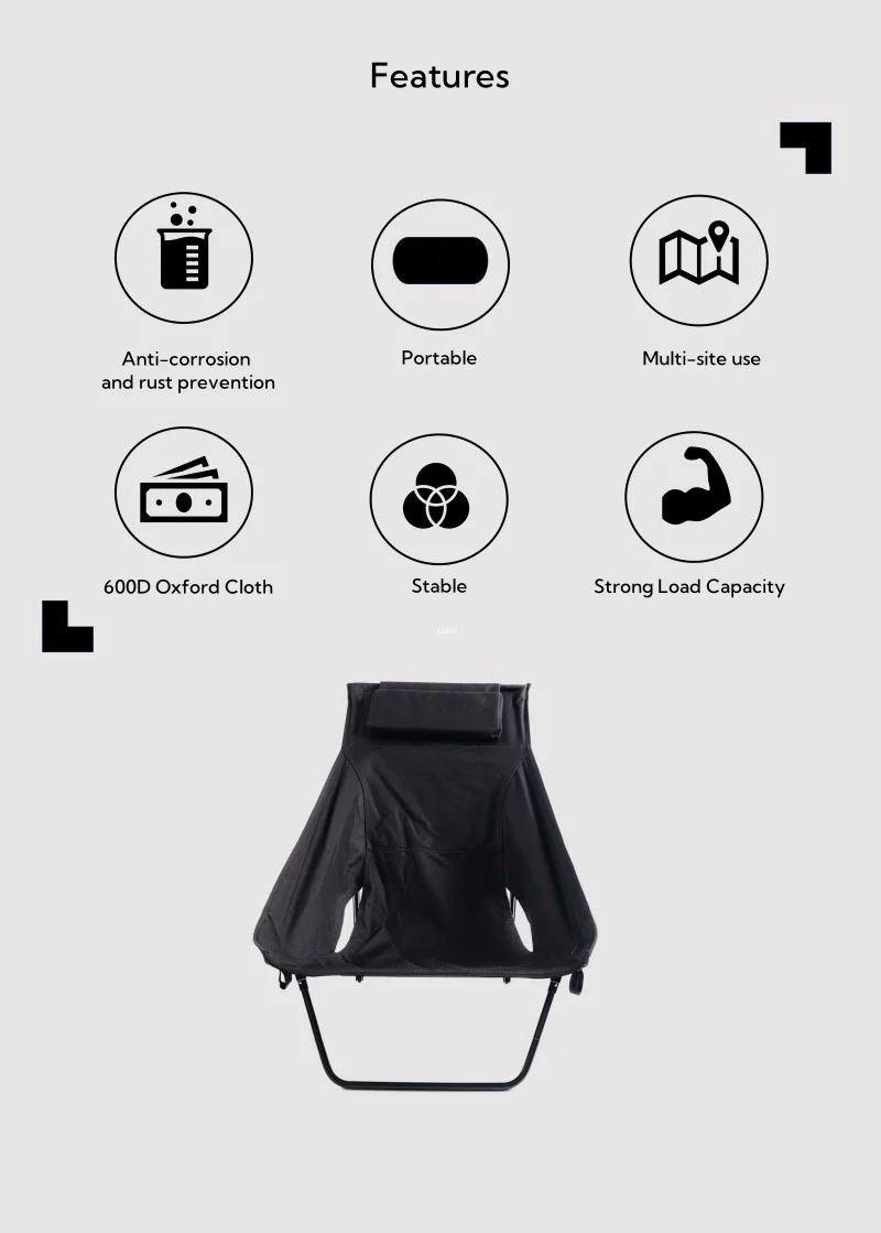 Product Name: Ultra-Lightweight Outdoor Folding Chair, Portable 600D Oxford Camping Chair, High Back Fishing Chairs for Beach