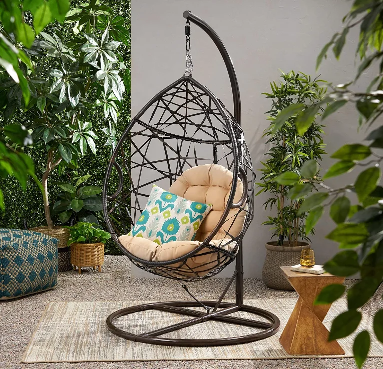 Product Name: Woqi New Design Swing Chair Hanging Egg with Steel Stand Rattan Egg Chair Brown Rattan Swing Chair