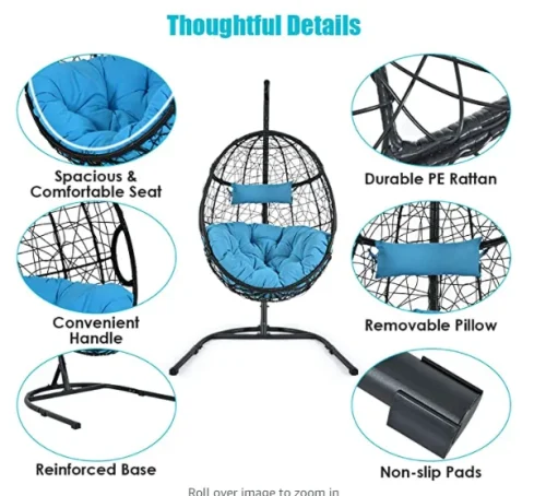 Product Name: Woqi Outdoor Rattan Hanging Egg Chair Hammock Chair for Garden and Porch