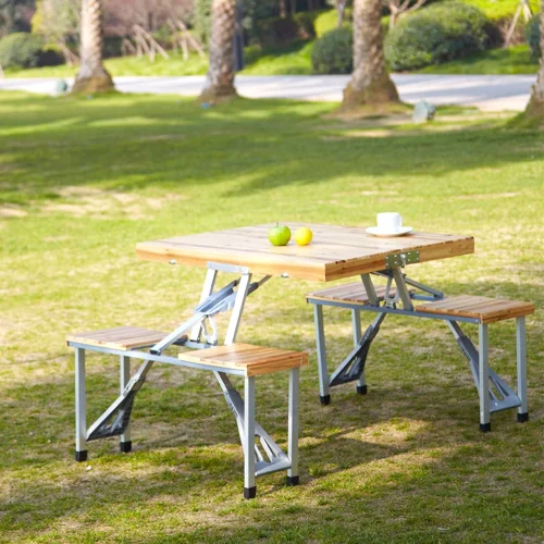 Multifunctional Restaurant Outdoor Picnic Wooden Table Beech Foldable Camping