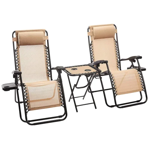 Outdoor Adjustable Zero Gravity Folding Reclining Lounge Chair with Pillow – Pack of 2