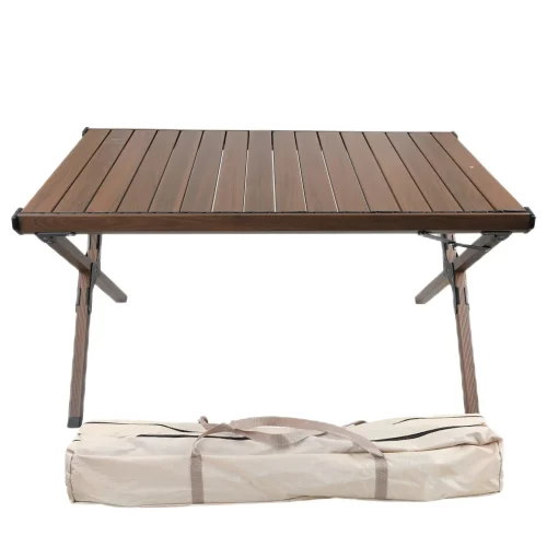 Outdoor Camping Egg Roll Portable Leisure Walnut Color Aluminum Alloy Table Foldable Storage Table Coffee Table