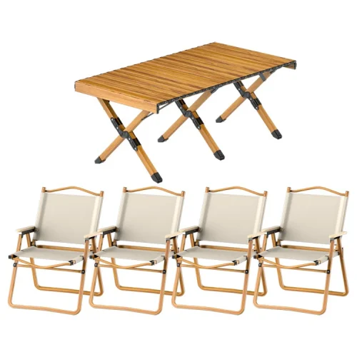 Outdoor Folding and Chair Solid Wood Table Camping Picnic Supplies Equipment Portable Car Self-driving Tour