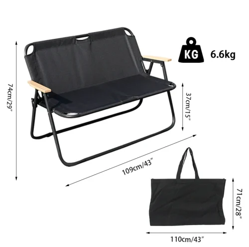 Outdoor Folding Bench Love Seat Chair Double Camping Loveseat Chair for 2 Person Aluminum Frame Double Camping Chair