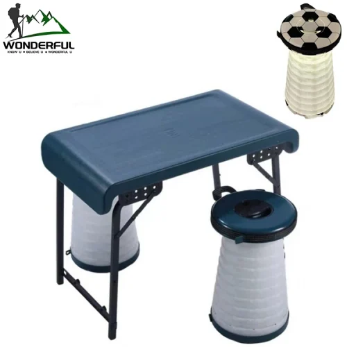 Outdoor Folding Shrinking Retractable Lighted Warning Chair Camping Night Fishing One Table Two Stools Set