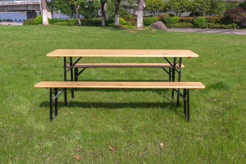 Outdoor Folding Portable Beer Bench Table Set Camping Dining Rectangular Wooden Portable Bar Table Seat Chair Set for Events