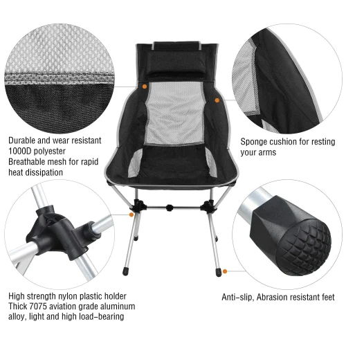 Outdoor Lightweight Portable High Back Beach Chair Picnic Chair Camping Chairs Folding With Headrest