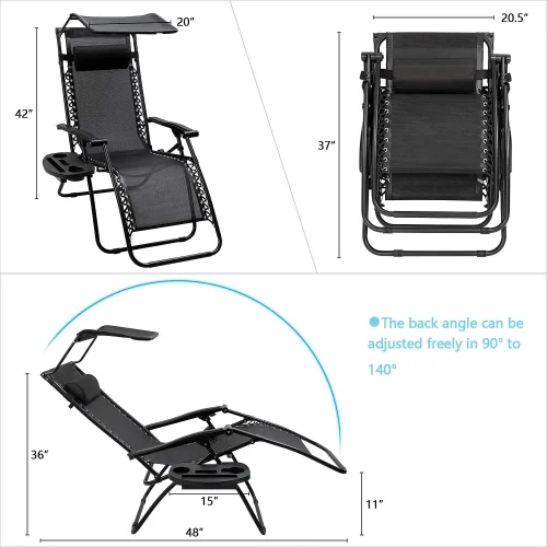 Outdoor Lightweight Adjustable Garden Camping Portable Folding Lounge Zero Gravity Tanning Chair With Sunshade Canopy